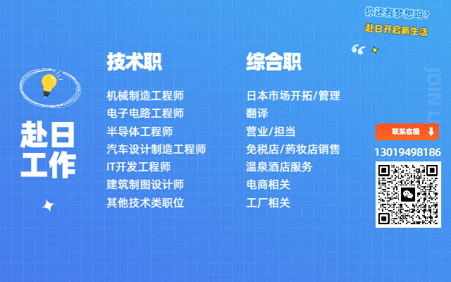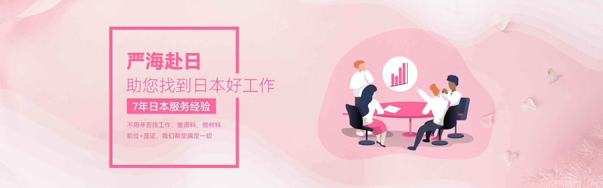 嚴海赴日(workinjapan.cn)是專業(yè)的赴日工作服務(wù)平臺,是大連嚴海人力資源有限公司旗下品牌。主要提供日本就職(工作簽)/日本留學(xué)(半工半讀),等最新工作信息和資訊,為想赴日工作的小伙伴們提供專業(yè)的、一對一的咨詢,為您職業(yè)生涯規(guī)劃、永居辦理、在日期間換職、轉(zhuǎn)換簽證等方面提供支援。